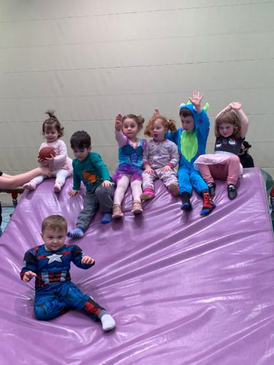 In der Faschingswoche ging es bunt, lustig und mit viel Spaß in der Sporthalle zu. Prinzessinnen, Zauberer, Einhörner und noch viel mehr zauberhafte Gestalten kletterten, spielten und balancierten beim Eltern-Kind-Turnen.