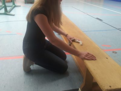 In den Osterferien rückten fleißige Helfer des TV Germania an und räumten, putzten und pflegten die Geräte und Geräteräume in der Kurpfalzhalle. Die Lederteile wurden eingefettet, die Holzteile mit Holzreiniger geputzt und der Rest wurde vom Staub befreit mittels Lappen und Staubsauger.