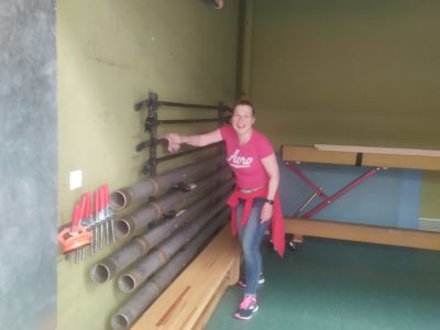 Große Hilfe bekamen wir durch den Hallenwart, Volker Meister, der uns gerade bei den schweren Arbeiten unterstützte. Er stellte uns außerdem das benötigte Werkzeug zur Verfügung.