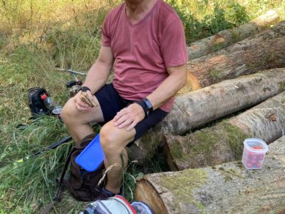 Das Kneippbecken am Trienzbach kam uns bei der Hitze gerade recht. Die Lourdes Grotte war interessant anzusehen! Zum Glück fanden wir in Dallau noch einen Bäcker mit Sitzplatz draußen für eine kleine Stärkung. Nach unserer Rückfahrt ab Dallau, trafen wir uns nach einer Dusche zu Hause, um 19:00 Uhr im Garten zu einem Abendessen bei Liesel.