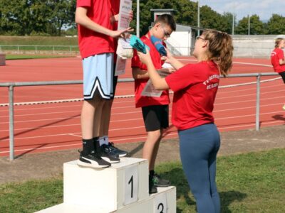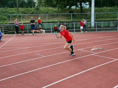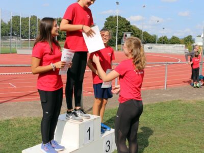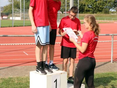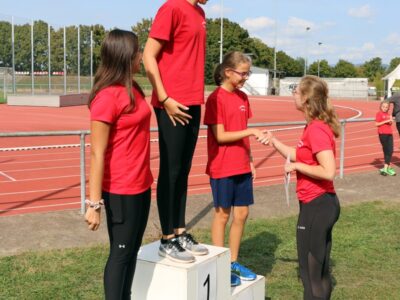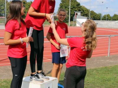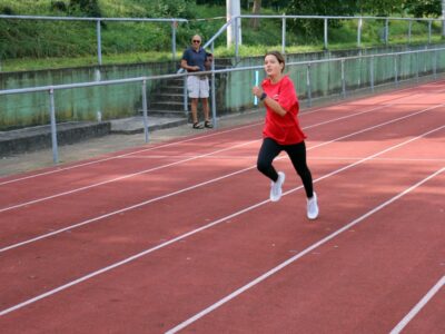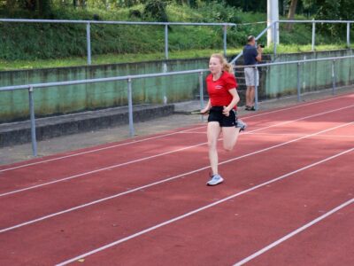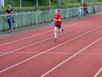 Nachdem alle Disziplinen erfolgreich beendet wurden, folgte ein besonderes Highlight, die 4x100m Mixed-Staffel. Hier liefen alle SportlerInnen ab 12 Jahren mit. Die Teams mussten aufgrund von einigen Krankheitsausfällen spontan neu zusammengesetzt werden, sodass es auch vorkam, dass Senioren und Jugendliche ein Team bildeten. Zudem sprangen die beiden Trainerinnen Jessica und Alica spontan ein. Der gegenseitige Zuspruch und die motivierenden Sprüche untereinander spiegelten auch den gruppenübergreifenden Teamgeist der Leichtathleten wieder.