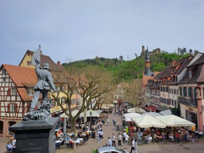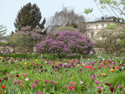 Aber als weiterer Höhepunkt erwartete uns der Hermannshof, eine über 200 Jahre alte Parkanlage, die u.a. mit blühenden Glyzinien und prächtigen Tulpen ein wunderbares, farbenfrohes Bild bot. Nach so vielen Eindrücken war eine ausgedehnte Pause auf dem Weinheimer Marktplatz sehr willkommen und gut gestärkt wurde der kürzere Rückweg, vorbei an Vorgärten und alten Villen, auf dem früheren „Blütenweg“ gewählt. Trotz ungewohnt sommerlicher Temperaturen kehrten alle gut gelaunt zurück und freuten sich über die schöne, gemeinsame Unternehmung.