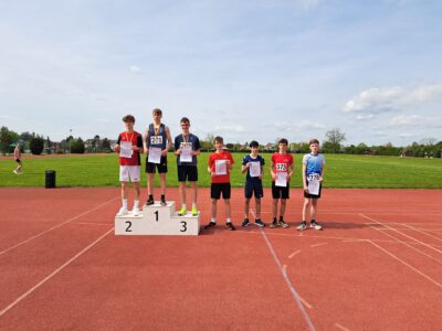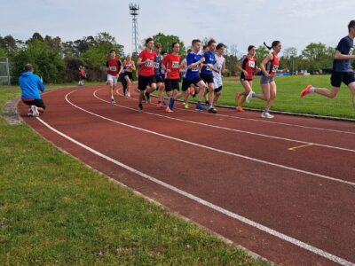 Ein paar Minuten später standen die 3.000m für Elias (MU18) in einem großen StarterInnenfeld mit vielen verschiedenen Altersklassen an. Für Elias war es der erste Wettkampf in der Altersklasse MU18. Im Vergleich zu den Altersklassen im Schülerbereich werden die Jahrgänge (M16 + M17) nun zusammen gewertet, sodass er in diesem Jahr zu den jüngeren zählt. Aufgrund seiner bereits im letzten Jahr gesammelten Wettkampferfahrung ließ er sich davon jedoch nicht einschüchtern und konzentrierte sich komplett auf sich.