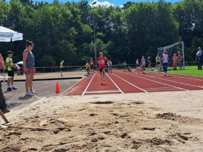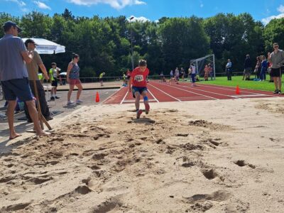 Bei super Wettkampftemperaturen begann für Julian (M13) der Wettkampf mit dem Weitsprung, bereits am Vormittag. Nach einer kurzen Verletzungspause war er wieder fit und wollte endlich zeigen, dass ihm diese Disziplin liegt und er mit der Konkurrenz mithalten kann. Bereits im zweiten Versuch sprang Julian mit 4,65m zu einer neuen Bestleistung und sicherte sich mit dieser Weite den 2.Platz in der Altersklasse M13. Weiter ging es für Julian dann mit dem 75m-Sprint. Auch hier erreichte er nach einer super Startphase eine neue Bestleistung und landete erneut auf einem Podiumsplatz.
