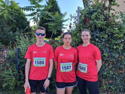 Nach einem gemeinsamen Warm-Up fiel pünktlich um 9:10Uhr der Startschuss für die 5km. Die Strecke führte über Asphalt- und Feldwege vorbei an der historischen Materialseilbahn und war durch Anstiege sehr abwechslungsreich gestaltet. Trotz der hügeligen Strecke hatten alle Germanen noch die Kraft für einen Zielsprint. Auch wenn Ben seine super Zeit vom Bahnstadtlauf nicht wiederholen konnte, überquerte er als sechster des Gesamtlaufes die Ziellinie und sicherte sich damit den 2.Platz in der Altersklasse MU16. Auch Alexandra zeigte eine gute Leistung und spurtete als sechste Frau ins Ziel. Mit dieser Leistung sicherte sie sich ebenfalls einen Podiumsplatz bei den aktiven Frauen. Milena lief von Beginn an ein gutes Rennen und blieb am Ende nur wenige Sekunden über ihrer Bestleistung. Damit erreichte sie in der Altersklasse WU16, wie auch die beiden TeamkollegInnen, einen Platz auf dem Treppchen.