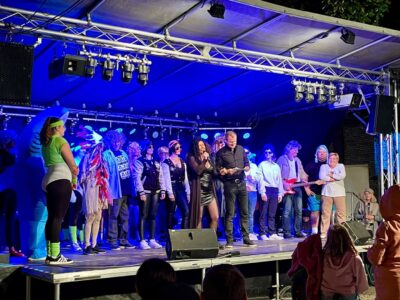 Der Wettergott meinte es dieses Jahr nicht so gut mit uns. Sehr kühle Temperaturen vor allem in den Abendstunden. Am Montagabend wartete das Publikum gespannt auf die Bühnenshow und die Plätze vor der Bühne waren alle schon vor 20 Uhr besetzt. Hochkarätige Künstler hatten Ihr Kommen angekündigt, wie z.B. Bon Jovi, Foreigner, The Proclaimers, Roland Kaiser und La Bouche. Sogar die Esteriore Brothers „flogen“ extra nach Dilje. Es wurde mitgesungen, gefeiert und getanzt. Für die Finale kamen alle Künstler nochmal zusammen auf die Bühne. Die Künstler aus dem Haus KC Frösche und TV Germania brachten das Publikum zum Toben und wurden mit tosendem Beifall bedacht. Ralf Panzer als Moderator hatte das Publikum voll im Griff. Die vorherigen Proben und das Aussuchen der passenden und schillernden Kostüme kosten Zeit und viel Mühe, aber es hat sich wieder Mal gelohnt.
