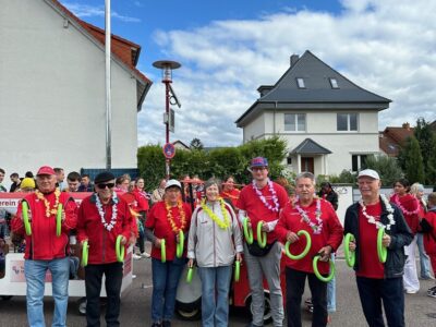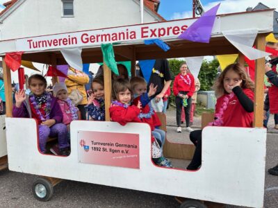 Samstags bei kühler Wetterlage ging ab 14:30 Uhr der Umzug durch die Straßen von St. Ilgen und wir hatten als Motto „Die Welt ist bunt, der TV Germania auch“. Unsere Aktiven, die Turnkinder, die Vorstandschaft, und die Übungsleiter waren alle mit ihren roten Vereins-T-Shirts gekleidet und verteilten über 300 Blumenketten an die vielen Zuschauer & Besucher.