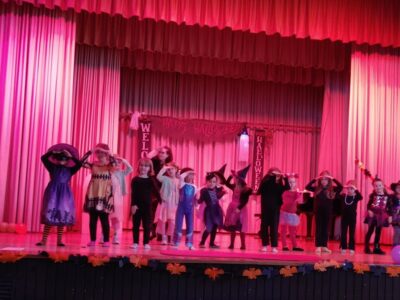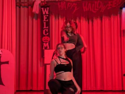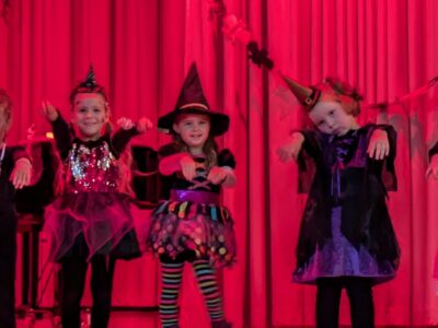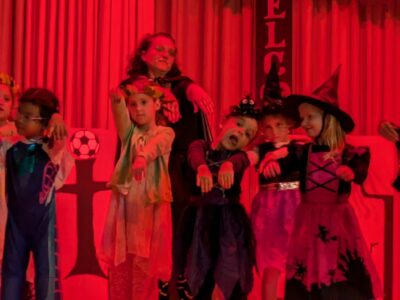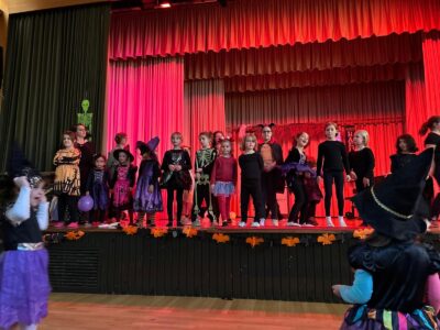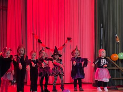 Die Übungsleiterinnen hatten das Motto Halloween ausgesucht und entsprechend waren alle Kinder als Hexen, Skelette und weitere passende Gestalten verkleidet. Auch die Bühne passte sich dem Thema an, mit Grabsteinen und gespenstisch roter Beleuchtung. Zu entsprechend gruseligen Liedern tanzten die Gruppen und zeigten ihr Können. Die Zuschauer waren ganz begeistert und sparten bei jedem Auftritt nicht mit Applaus. Zum Schluss gab es eine kleine Halloween-Überraschung für jedes Kind.