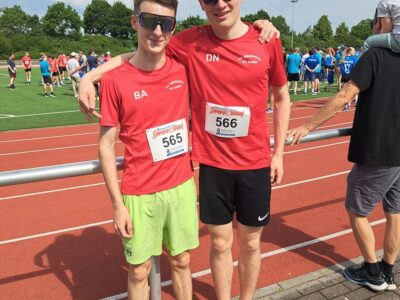 Ben und David (beide MU18) starteten über die Edinger Meile, welche 3,6km umfasste. Nachdem eine Runde im Stadion absolviert wurde, ging es auf die Laufstrecke, welche zwischen den Feldern hindurch wieder zum Stadion führte. Ben kam bereits als vierter des Gesamtlaufes wieder im Stadion an und sicherte sich in 13:17min den 1.Platz in der Altersklasse MU18. Auch sein Trainingskollege David lief ein gutes Rennen und belegte den 2. Platz, sodass es einen Doppelsieg für den TV Germania wurde.