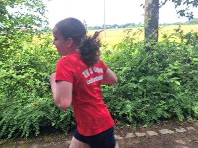 Jule (W12) startet wenig später beim Schülerlauf über die 1,5km. Am Start war es aufgrund der großen Teilnehmerzahl ziemlich wuselig, doch Jule sortierte sich nach dem Startschuss souverän in das Teilnehmerfeld ein, sodass sie ihr eigenes Tempo laufen konnte. Jule zeigte, wie auch schon die beiden Jungs, ein super Rennen und sicherte sich ebenfalls den 1.Platz in der Altersklasse WU14.