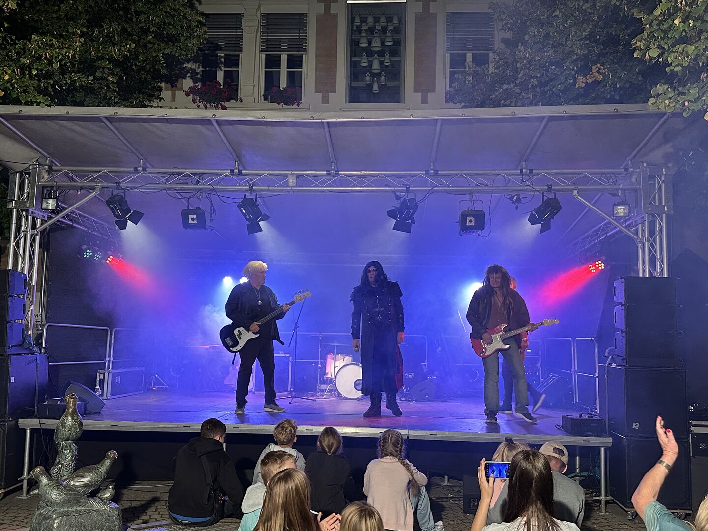 Am Stand angekommen, war der Durst schon groß und es hatten sich viele Gäste eingefunden. Bobby Schöpe stellte den TV dem Publikum auf dem Rathausplatz vor und alle konnten hören, was der TV zu bieten hat.