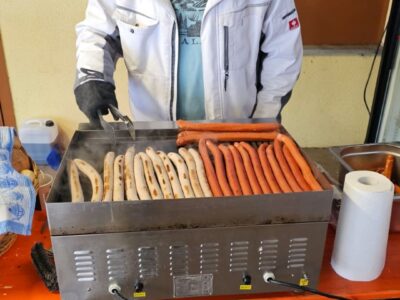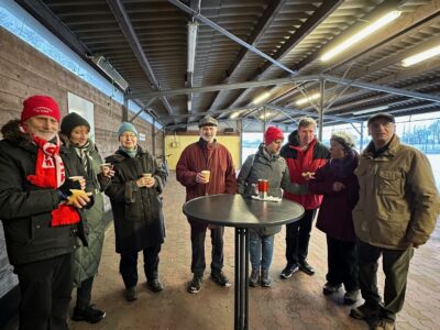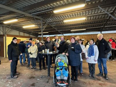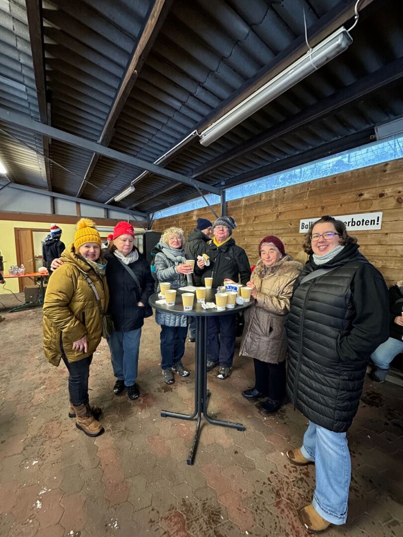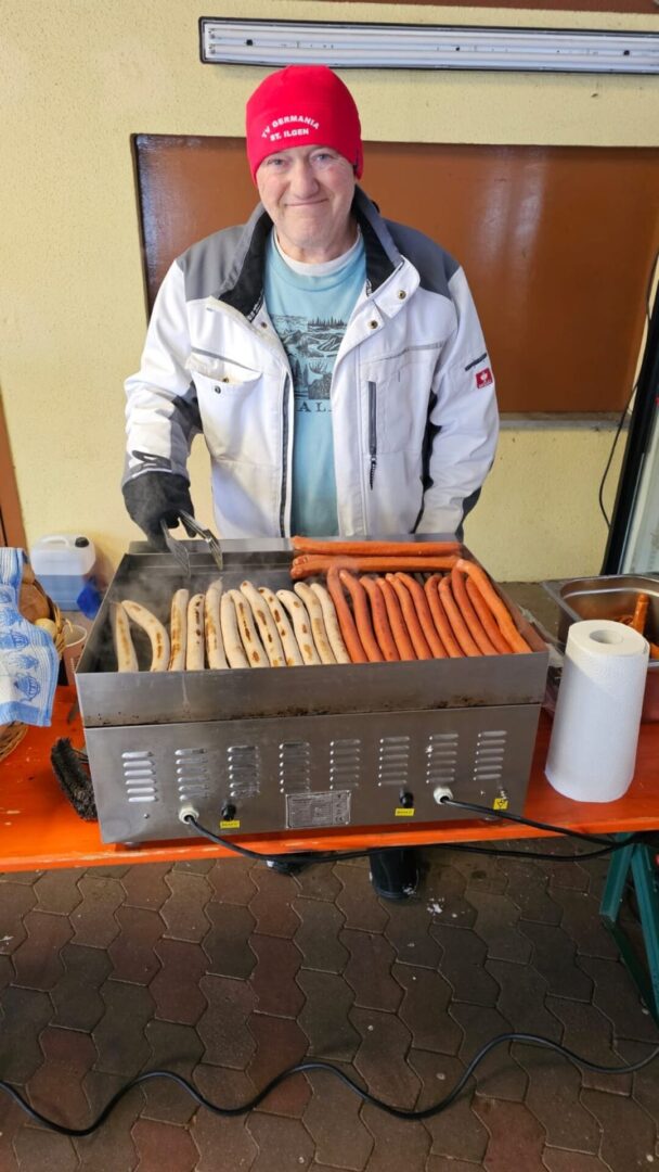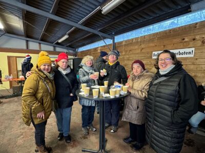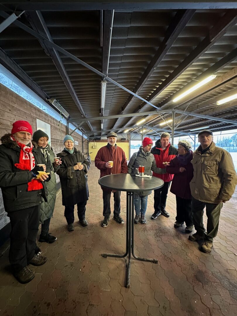 Nach ungefähr 1,5 Stunden und 5km Weg kehrte die Wandergruppe wieder im Waldstadion ein. Dort warteten die Helfer des Vergnügungsausschusses mit Glühwein und Früchtepunsch sowie heißen Bratwürsten vom Grill.