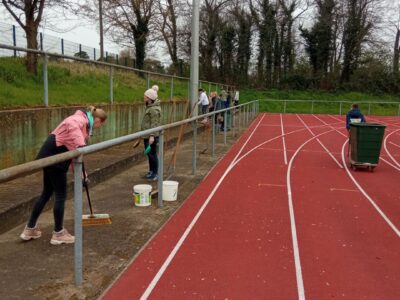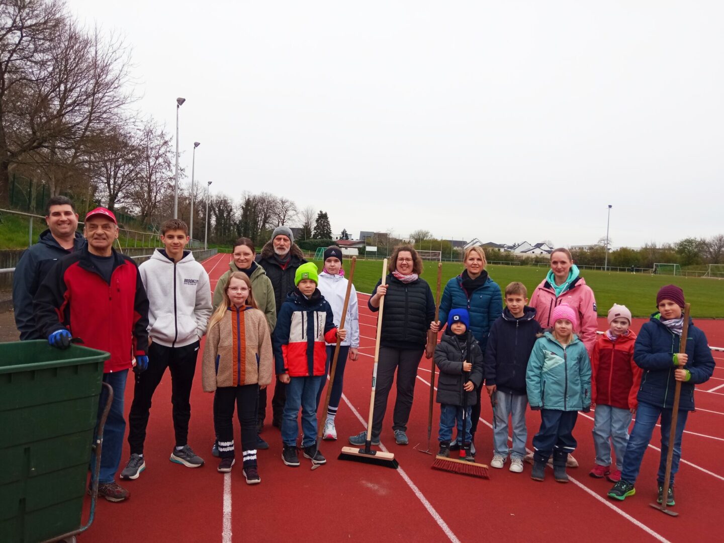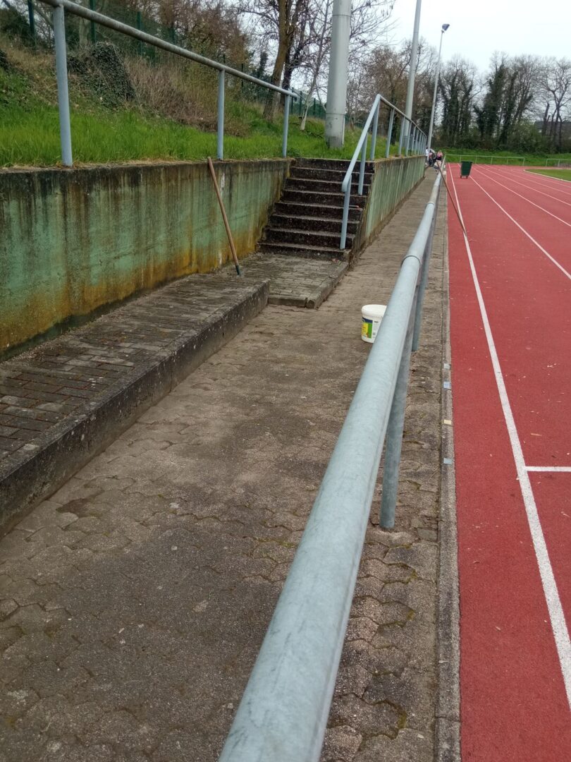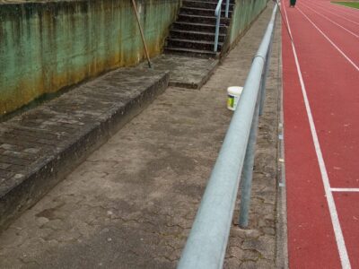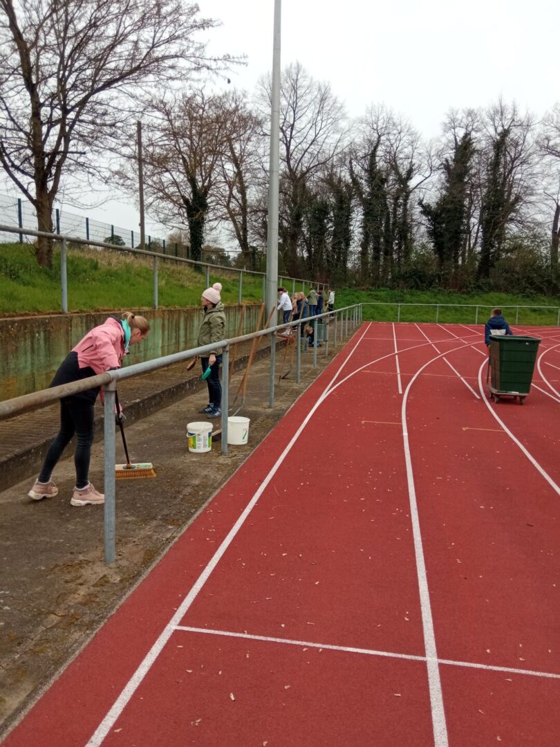 Er hatte schon alle Gerätschaften und Behältnisse für den Einsatz vorbereitet. Das Unkraut rund um die Tartanbahn wurde mit Schabern abgekratzt und mit Moos und Laub zusammengekehrt und entsorgt. Die Abdeckung der Weitsprunggrube wurde gesäubert, sowie die Weitsprunggrube umgegraben und geglättet. Alle 12 Müllkörbe wurden geleert. Der Hausausschuss nutzte die Gelegenheit, rund um das Vereinshaus, den beiden großen Lichtschächten und Wege sowie den Unterstand zu säubern und das Unkraut zu entfernen.