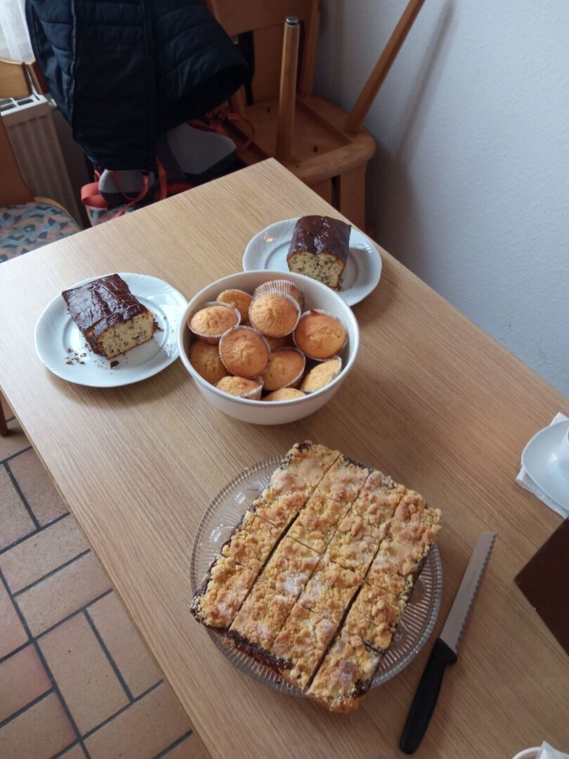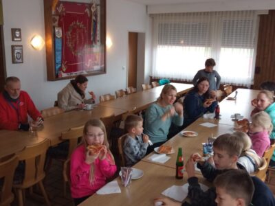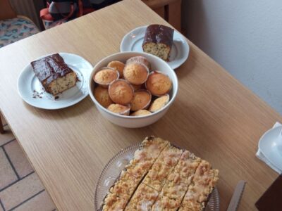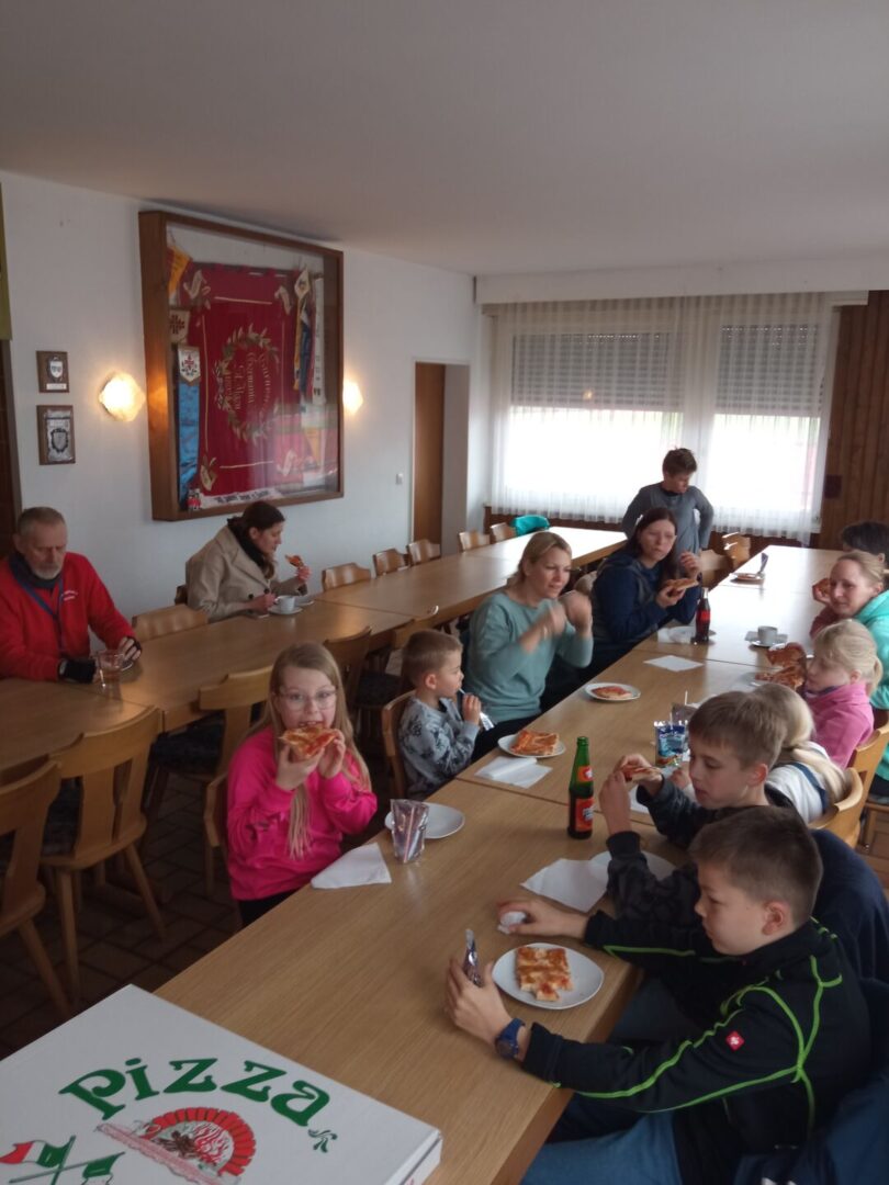 Nach getaner Arbeit mussten alle Werkzeuge gesäubert und aufgeräumt werden. Dann freuten sich alle Helfer auf die zweierlei Pizzas und kalte Getränke. Zum Nachtisch gab es Kaffee und verschiedene, selbstgebackene Kuchen, der Allen gut schmeckte. Susan Want bedankte sich im Namen der Vorstandschaft bei den Helferinnen und Helfern für die erbrachte Arbeit. Um 13:00 Uhr ging der Arbeitseinsatz zu Ende.